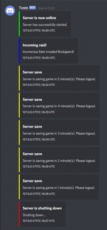 -- Sends Discord webhook notifications on startup, raids and shutdown.